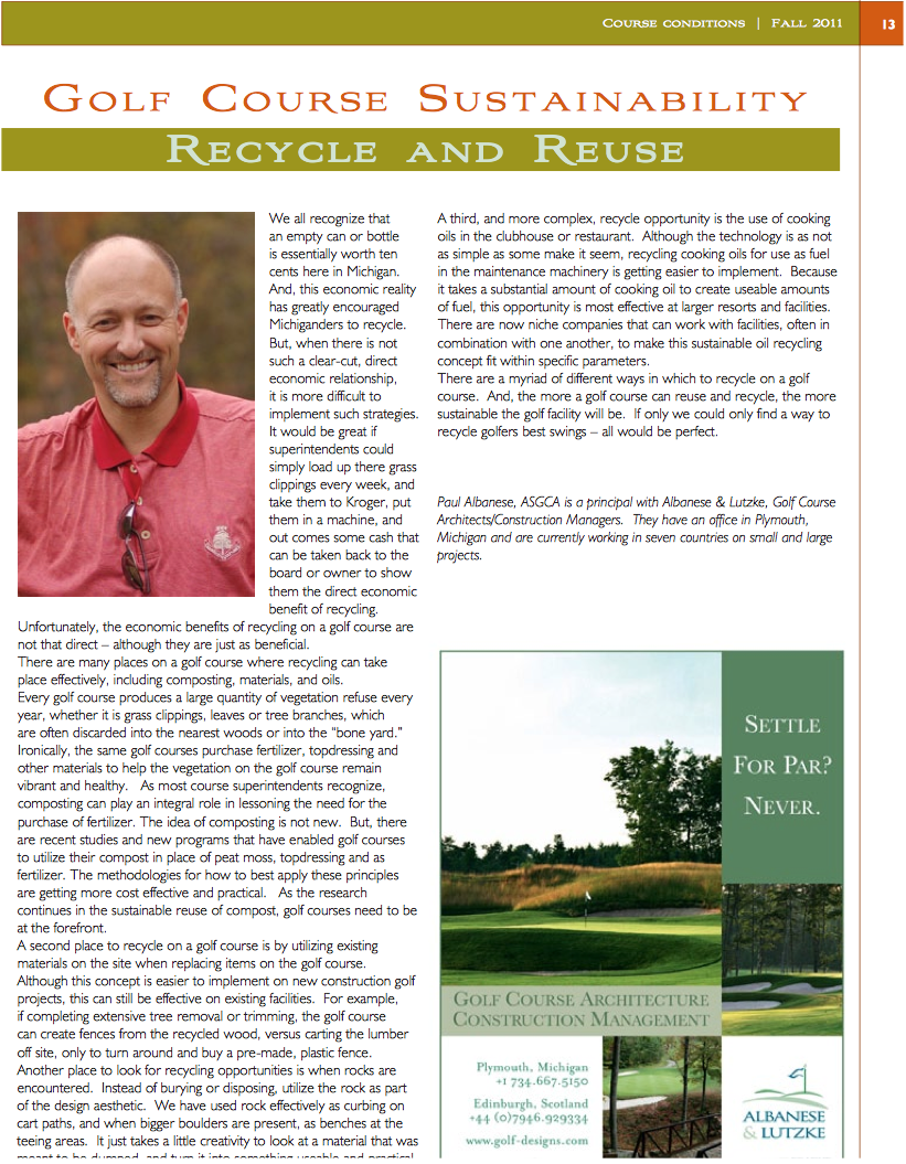 Paul Albanese, ASGCA is a principal with Albanese Golf Architecture & Construction Management. They have an office in Plymouth, Michigan and are currently working in seven countries on small and large projects.